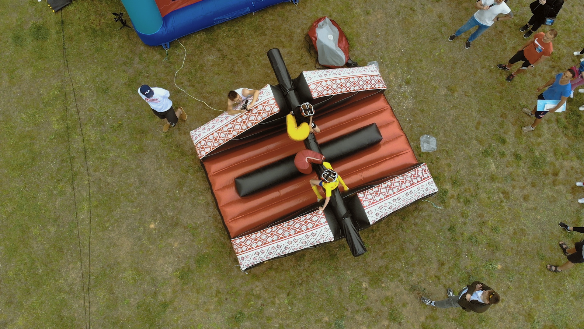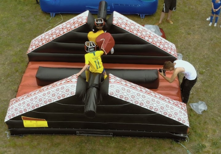 Бой на бревне — аренда и прокат зрелищного аттракциона для праздников, корпоративов и детских дней рождения по всей Беларуси. Состязание проходит на мягком надувном батуте: участники усаживаются на балансирующее бревно и стараются сбить соперника мягкими битами или гигантскими перчатками. Это весёлое и безопасное испытание на ловкость и равновесие, которое превращает древнюю забаву в яркое шоу для гостей любого возраста. Забронируйте «Бой на бревне» прямо сейчас и подарите вашему мероприятию незабываемые эмоции!