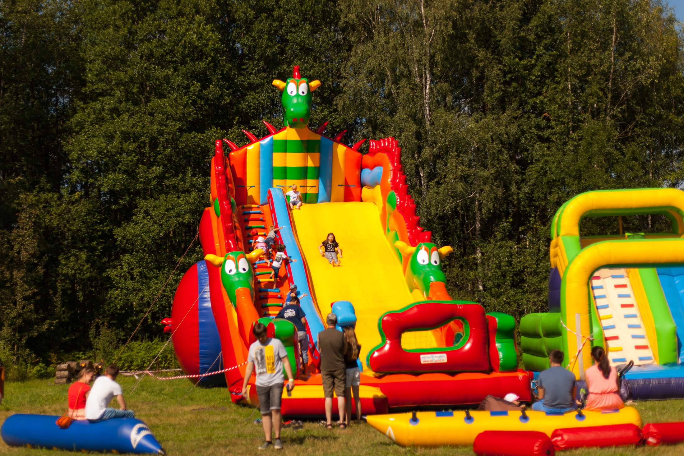 Гигантская надувная горка с широкими дорожками (до 2 м шириной) и высотой до 10 м. Участники поднимаются по удобной лестнице с перилами, а затем стремительно спускаются по гладким наклонным поверхностям. Дизайн с элементами драконов и волнообразными формами создаёт атмосферу сказочного приключения. Аттракцион подходит для гостей от 4 лет и старше — каждый найдёт свой уровень адреналина!