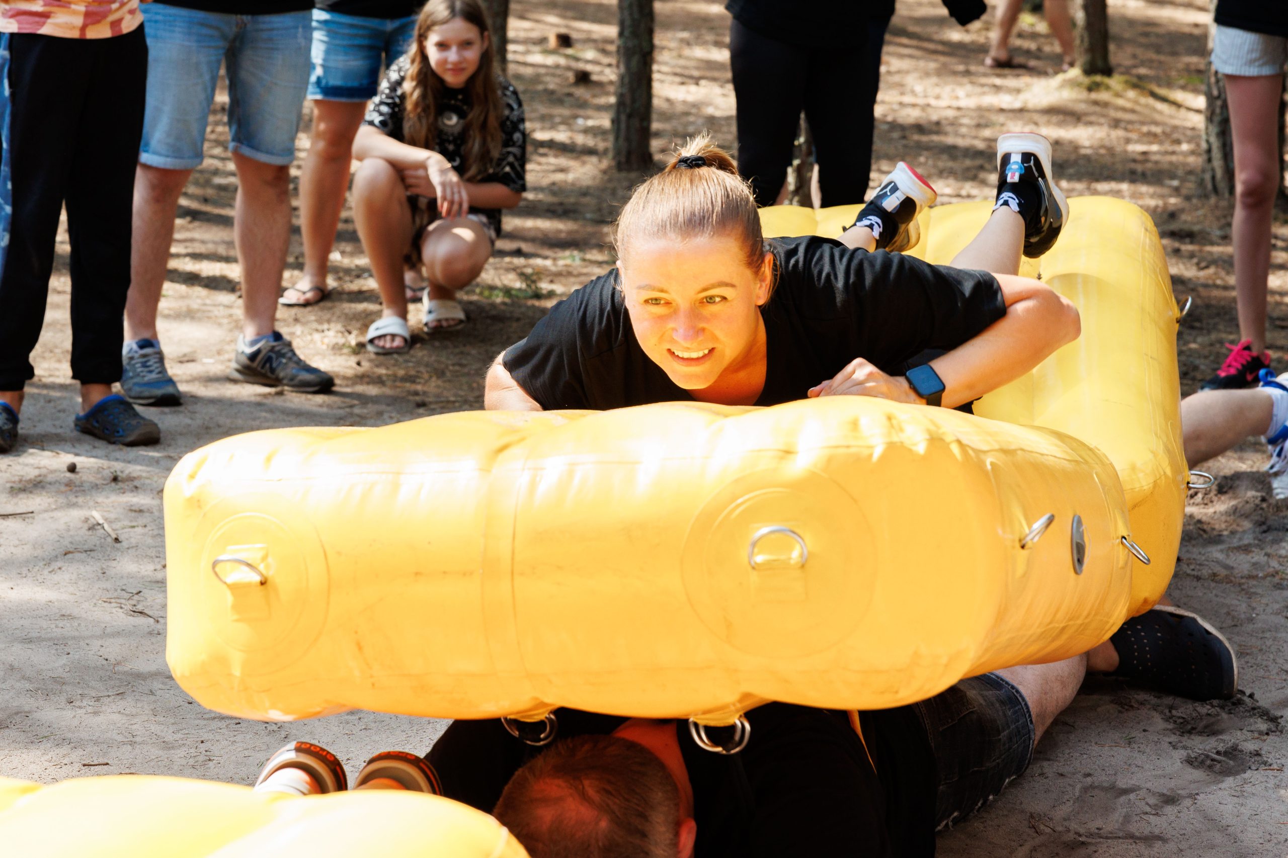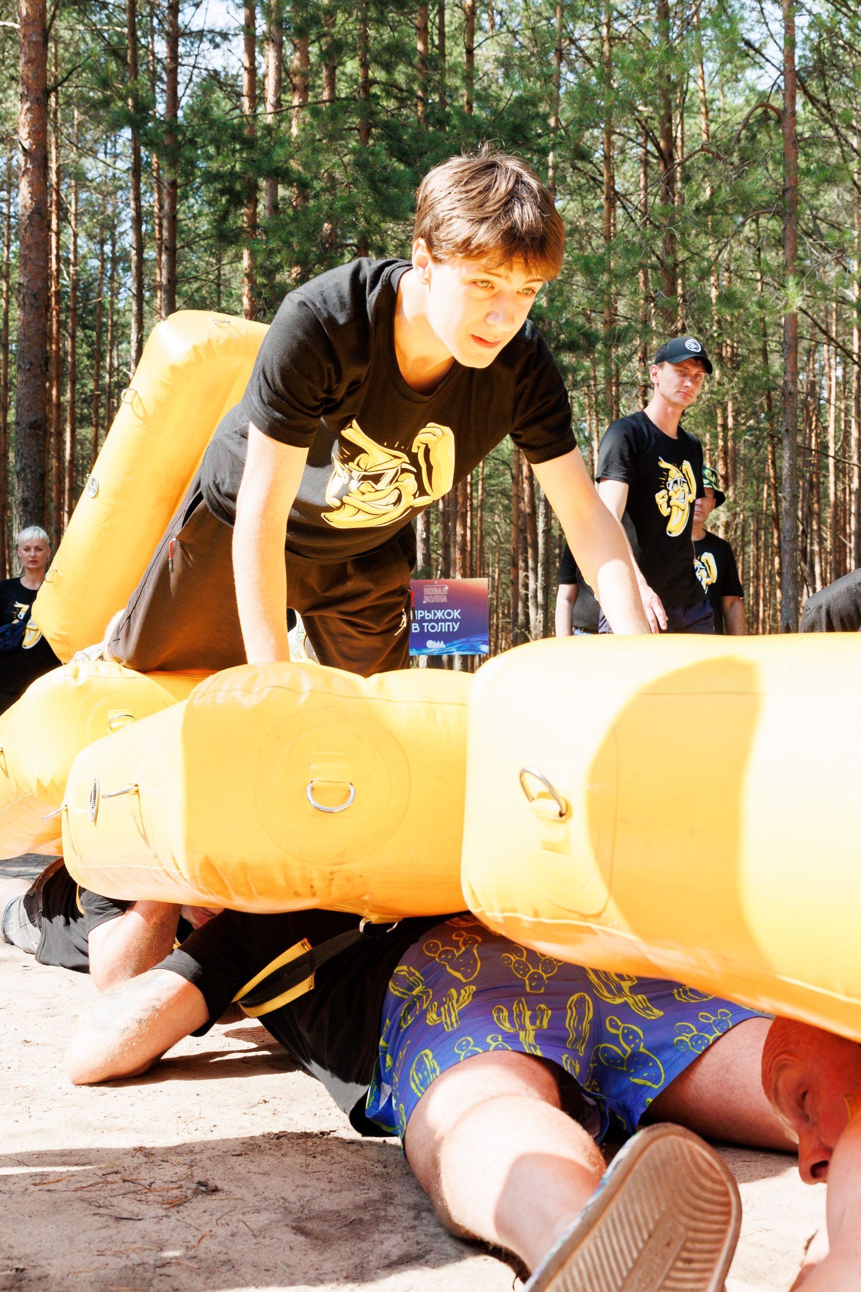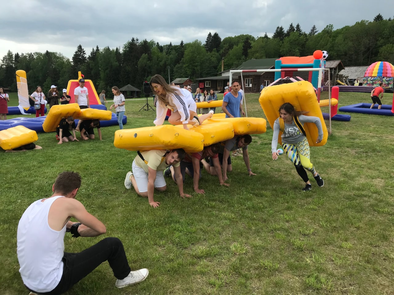 Командный плот — аренда и прокат для праздников, корпоративов и детских дней рождения. Необычный аттракцион, который объединяет гостей в команды и дарит азарт соревнования: четыре участника надевают специальные модули на спины, соединяясь в подобие плота, а пятый игрок проходит по этому импровизированному сооружению, стараясь удержать равновесие. Уникальное преимущество — сочетание командной работы, ловкости и веселья, превращающее любое мероприятие в яркое шоу.