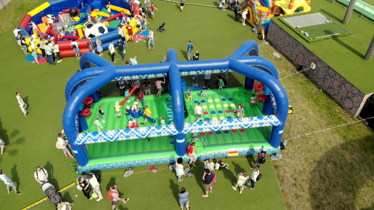 Многофункциональный надувной комплекс включает восемь игровых зон: