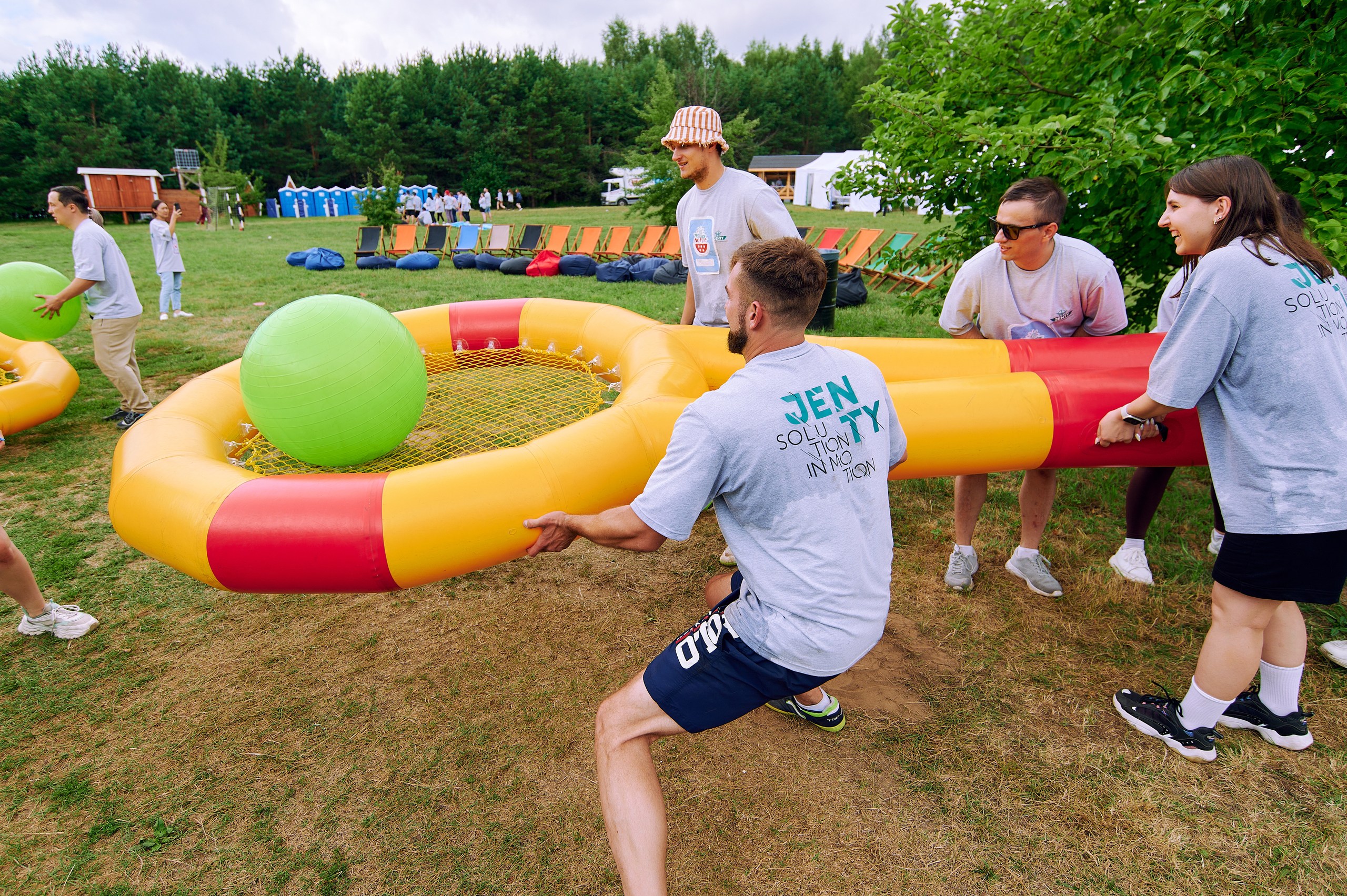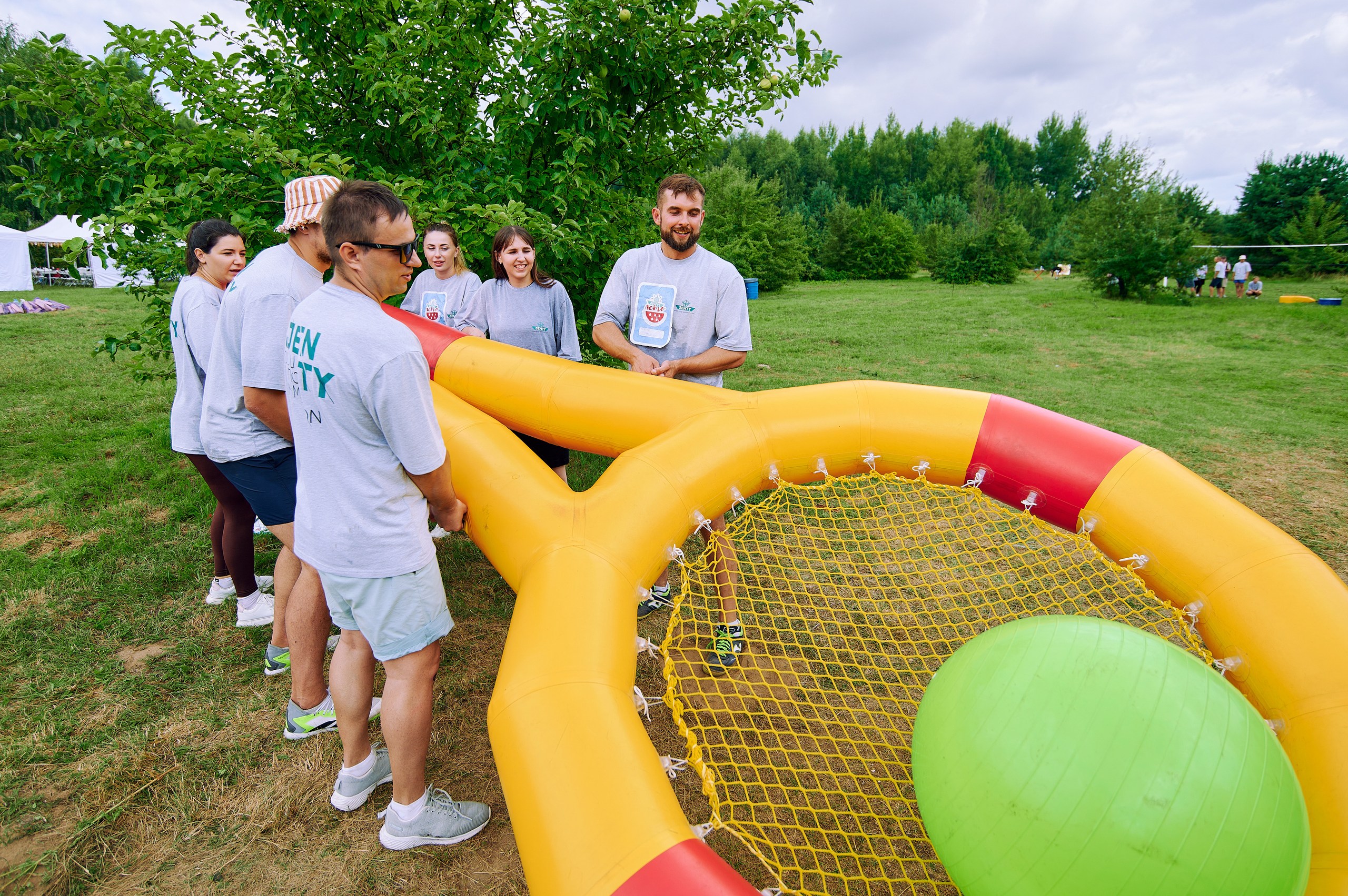 Надувной волейбол — аренда и прокат для праздников, корпоративов и тимбилдингов. Две команды по 4–6 человек держат огромные надувные ракетки и перебрасывают волейбольный мяч через сетку. Чтобы заработать очко, мяч должен коснуться земли на стороне соперников. Уникальное преимущество — необычный формат классической игры, который превращает её в весёлое шоу, даря участникам азарт, а зрителям — море смеха и ярких эмоций.