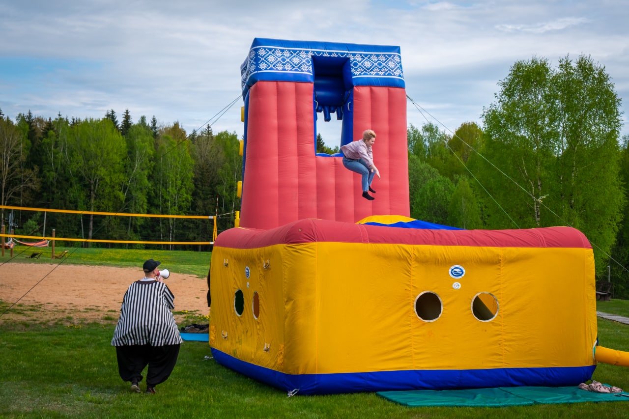 Участники поднимаются по надувной стене с зацепами, как на настоящем скалодроме, а на высоте 3,5 метра совершают прыжок на гигантскую надувную подушку. Конструкция гарантирует мягкое приземление и полную безопасность — идеально для гостей всех возрастов!