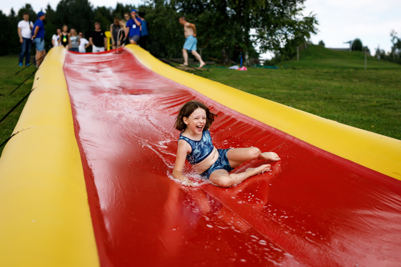Гости поднимаются на стартовую площадку, скатываются по широкой водной горке и финишируют в безопасной зоне — бассейне или мягкой зоне торможения. Аттракцион подходит для детей (от 8 лет) и взрослых — главное правило: один человек на спуск за раз!