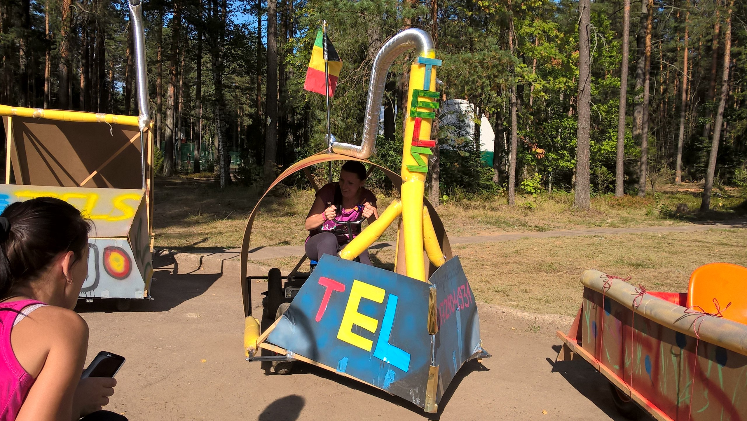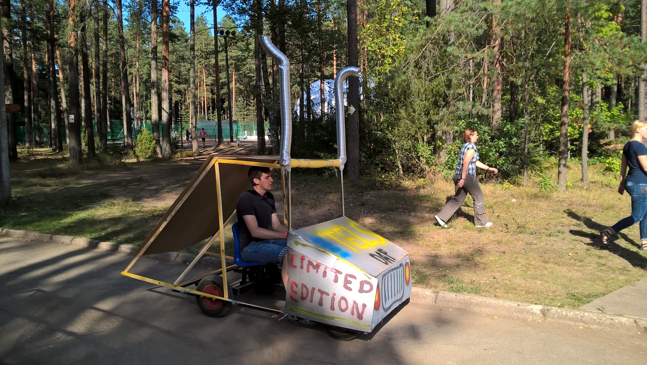 1. Этап конструирования: командам выдаётся базовый каркас с рулевым управлением и колёсными осями. Используя подручные материалы и фантазию, участники создают уникальный «тарантас»: укрепляют конструкцию, улучшают управляемость, украшают дизайн.